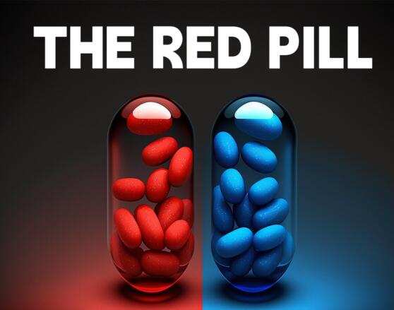 Red Pill(红色药丸)一词最早起源自电影《黑客帝国》,上述片段我相信大家如果看过电影的话一定不会陌生:墨菲斯找到母体(Matrix)里朝九晚五的上班族主角尼欧,给了他两个选择,一个是吞下蓝色药丸(Blue Pill),在已知的“现实世界”醉生梦死,继续当上班族,过着原先既定好的日子;而另一个,则是吞下红色药丸(Red Pill),脱离母体,明白真相。众所皆知,尼欧选择了Red Pill,展开了扣人心弦的《黑客帝国三部曲》的冒险,也成就这部哲学底蕴深厚,蕴藏丰富宗教思想的经典之作,而 Red Pill 也成为解放的代名词,很多广告文案写手也喜欢沾它的光,把 Red Pill 引用进去。因此,我们姑且可以给Red Pill下个定义:红色药丸是帮你认清两性动态,洞察男女不同需求以及背后规则的一套思想。而与之对应的Blue Pill定义是:蓝色药丸是沉溺在舒适安逸的假象里,无视男女有别,一味强调只要对一个人好,就能通过感动对方让对方报答你的恩情来满足你的欲望的一套思想。