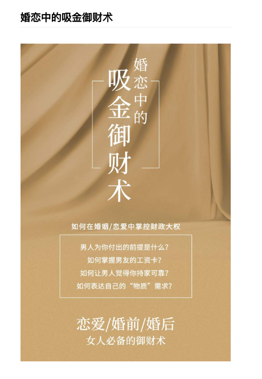 「情爱有术」是一个聚合恋爱、两性、婚姻领域中不一样视角的独门情感秘籍电子书,针对尖锐情感问题,给出辅导建议。电子书中的《绿茶高嫁手册》、《绿茶情绪操控术》、《婚恋中吸金御财术》、《姣姬战术》是写给女性看的,男性同胞慎入!聪明女人的技法,高价值男的沦陷!不做傻白甜!有得选,怎么不找个好点的?好女不嫁流光锤,好男不娶虎刺梅;男怕选错行,女怕选错郎!婚姻是女人的第二次投胎!不可不“渣”!这是一份进阶内容,电子书中充满大量实操手段,讲到如何能迅速高效地赢得此类高价值男,包括在哪儿认识高价值男、如何与他们建立深层次的情感链接、如何让他爱上和你聊天。这些内容是对国外姣姬精品内容的整理翻译,她们中不乏有成功嫁入豪门的普女,如欲望都市里卡曼达一样的公关老手,连续上升摘得富男的妖女,内容独家,落地可实行的战术。相信爱情,也清晰爱情婚姻背后的物质,人性,利益,纠结。白富美进阶教程《千金戏法:不动声色魅惑的妖女撩人术》,优雅女人撩人实操术,餐饮社交礼仪、如何调情,干货分享等等,女生一定要读哦!