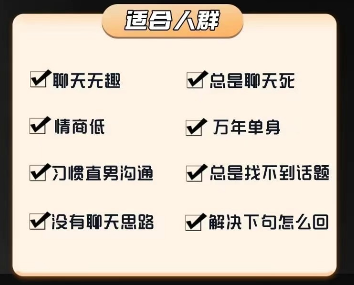 如果你聊天时大脑空白,不知道如何有趣的开场,女生不愿和你聊天,想拥有源源不断的话题,拥有发散性思维,让女生爱上和你聊天,聊天的时候让女生体验坐过山车的感觉,仅仅通过聊天就能找到女朋友,那么聊天特训营就是你的不二选择。