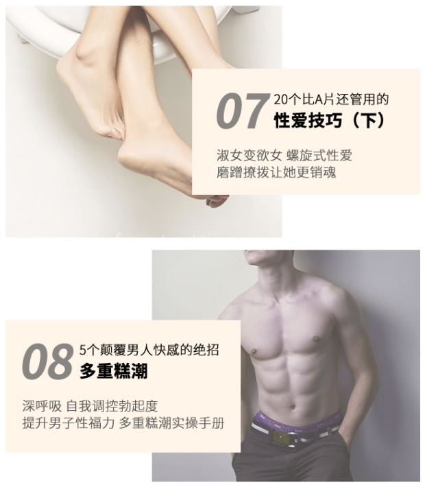 课程目录:1.全球10大红灯区实战攻略,花的少玩的多.mp32.G奶女神 亲测的爱爱玩法.mp33.女人的100种自慰方法(上).mp34.女人的100种自慰方法(下).mp35.前列腺糕潮:比S精更让人升天.mp36.20个比A片还管用的性爱技巧(上).mp37.20个比A片还管用的性爱技巧(下).mp38.多重高潮︱5个颠覆男人xo快感的绝招.mp39.命中G点,任何尺寸都可一击即中的性爱姿势.mp310.令男人欲仙欲死的双峰刺激法.mp311.三种方法让你在姓爱中享受多次高潮.mp312.5大A片体位 挑战极限高潮.mp3